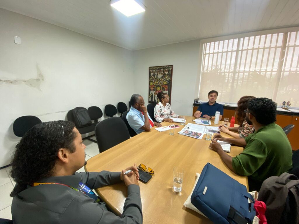 A Comissão Executiva do Concidades se reuniu na tarde desta quarta-feira (04) de março para deliberar sobre os assuntos pertinentes às questões do Conselho. Tendo como pauta principal: 1) a elaboração da programação para a posse dos novos conselheiros e 2) reunião de alinhamento institucional com o novo Secretário Estadual das Cidades.Dando início aos trabalhos da primeira hora da reunião (das 14h20 às 16h30, em formato híbrido, na sala do Conselho), estiveram presentes as conselheiras Maria Cleia e Dra. Suely Gonçalves, e os conselheiros Carlitos Reis, José Diniz, Prof. Ronald Chaves e Marcos Bros.Em comum acordo, foi deliberada a data dos dias 19 e 20 de março para a realização da posse do novo Concidades. Para além da definição da data, também foi fechada a programação, que contará com dois dias de muitos debates e apresentações estratégicas, levando aos novos conselheiros uma nova visão de suas responsabilidades institucionais enquanto agentes da participação social, em consonância com as políticas públicas que o Conselho defende.Já na segunda hora da reunião (das 17h10 às 18h15), no Gabinete do Secretário, acompanhados da secretária executiva do Concidades, Sra. Luciana Aquino, estiveram os conselheiros Marcos Bros, Prof. Ronald Chaves, Carlinhos Reis e a conselheira Dra. Suely Gonçalves em reunião com o Secretário Estadual das Cidades, com o objetivo de apresentar pautas importantes de interesse institucional do Concidades.Dando início ao diálogo da reunião com o Dr. Alberto Bastos (SECID), a secretária executiva, Sra. Luciana Aquino, fez a apresentação dos conselheiros presentes e explicou ao secretário o objetivo da reunião e sua importância para o momento, uma vez que estamos às vésperas da posse do novo Conselho.Para a abertura das falas, o professor Ronald Chaves deu as boas-vindas ao secretário.Foi colocada a importância de um presidente mais presente e parceiro das pautas do Conselho, uma vez que o Concidades é uma extensão da SECID no controle social das políticas públicas. O conselheiro Prof. Ronald Chaves enfatizou que se faz necessária uma forte parceria institucional entre ambos.